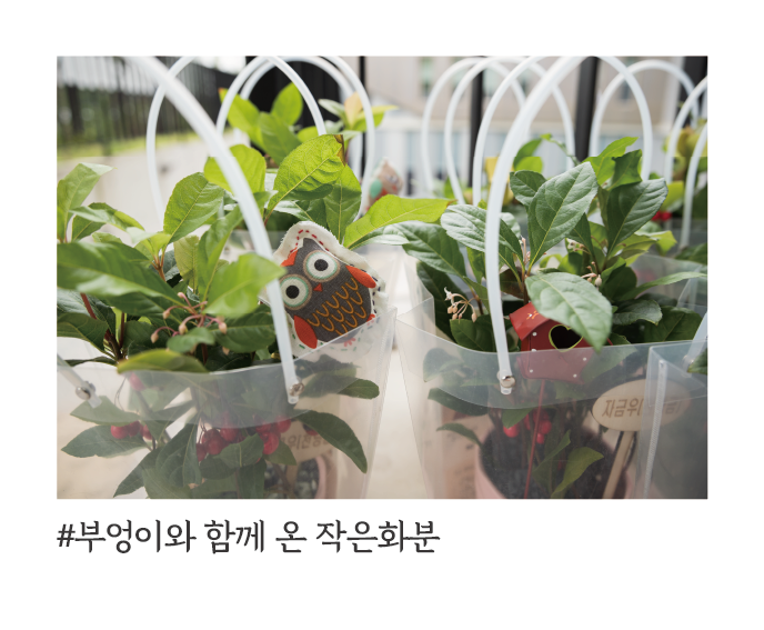 가볍고 알록달록한 작은화분으로 바뀌며, 귀여운 새집 악세사리들이 추가되었습니다. 화분을 욕심냈던 자원봉사단에게는 악세사리 선물이~!