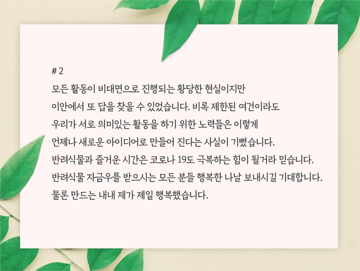 오늘은 50+참여자의 생생 후기와 예쁘게 만든 ‘작은화분’들을 소개해드릴게요!