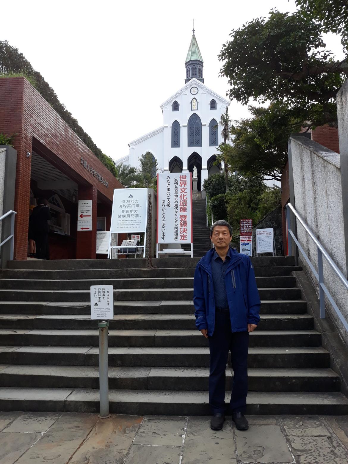 나가사키는 쇄국을 고집하던 에도시대의 유일한 개항지였다. 외래문화를 흡수하여 나가사키만의 독자적인 문화를 발전시켰다. 오우라 성당은 가장 오래된 천주교 건물로, 일본의 국보이자 2018년에 등재된 유네스코 세계문화유산이다. 유료라 들어가지 않고 앞에서 사진만 찍었다. 일본은 별로 중요해 보이지 않는 건물과 유물을 잘 보존하여 관광상품으로 쓰는 재주가 좋다는 걸 안경다리를 보며 실감했다. 가 보면 별것 없는데 관광객은 누구나 와 보는 관광명소이다. 기념으로 사진을 찍었다. 주변 공원과 거리 풍경이 깨끗하고 아기자기하다.