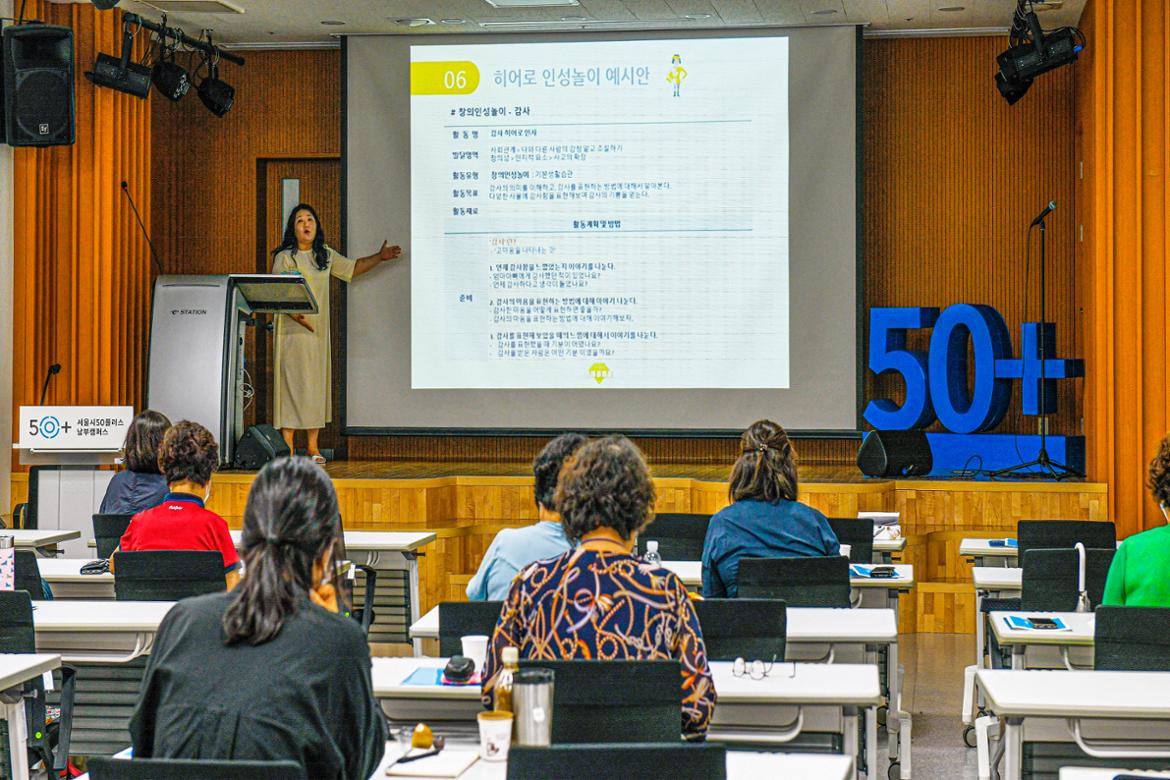 서울시50플러스재단과 어라운디(소셜벤처기업)가 함께하는 이번 행사는 3회째로 11월까지 상시 모집 예정이다. ‘우리동네 놀이돌봄선생님’ 양성과정은 갈수록 관심도가 높다.