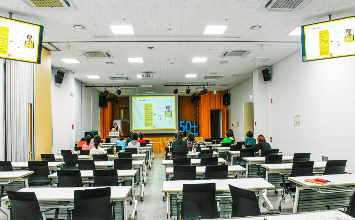 임지영 강사의 자부심 가득한 당찬 대답이다. 이런 마음이 넓은 강의실에서 강의를 듣는 히어로 선생님들에게도 전달되고 있었다. 오전 9시부터 저녁 6시까지 하루 종일 수업을 들으면서도 빼곡히 필기를 하며 수업에 열중하고 있는 히어로 선생님들의 뒷모습에 성실함과 사랑이 담긴 열정이 느껴진다.