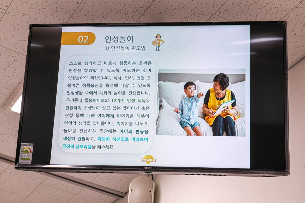 교육 내용 중에는 이런 것이 있었다. 아이의 감정 체크를 하는 것, 왜 할까. 엄마 대신이기 때문이다. 돌봄히어로는 엄마 대신이라는 엄중한 사실을 늘 잊지 말아야 한다는 것이다. 그리고 바른 인성으로 성장해야 하기 때문에 세상에 감사하는 마음도 키워주기 위한 인성놀이도 배운다. 이미 20년~30년 이상 육아와 교육의 경험을 지닌 분들이지만 또 다른 아이들의 일상을 돌봐야 하는 책임이 막중하다. 이 외에도 아동 발달이나 각종 놀이법, 안전교육과 돌봄히어로 서비스 가이드 등의 전반적인 교육을 고루 받는다.