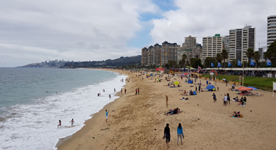 흐린 날씨에도 해수욕을 즐기는 사람들