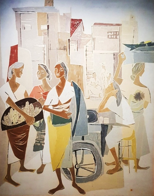 지난달 24일부터 국립현대미술관 덕수궁관에서 '탄생 100주년 기념: 박래현, 삼중통역자'전이 진행되었다. 20세기 한국 화단을 대표하는 미술가 박래현의 탄생 100주년을 기념해 마련한 이 자리는 운보 김기창의 아내가 아닌, 화가 박래현을 위한 전시회다. 박래현은 일제강점기 시절 일본유학을 통해 일본화를 공부했다. 전시장 입구에 걸린 고운 색깔의 미인도 <단장>(1943)이 그 시절 그림이다. 해방과 6.25전쟁을 거치면서 박래향의 그림은 절제된 선으로 담대하고 새로워졌다. 서구 모더니즘을 동양화풍으로 해석한 <이른 아침>(1956)과 <노점>(1956)과 같은 대작으로 국전에서 대통령상을 받게 된다.