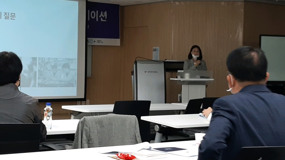 또한 발표자로 나선 강유경씨는 “학습지원단을 해보니 50+세대에 전직교육이 필요하다 생각했어요. 오늘 참석하신 분들 면면이 대단하신 분들이 많아 기대가 됩니다.” 라며 미소 짓는다.