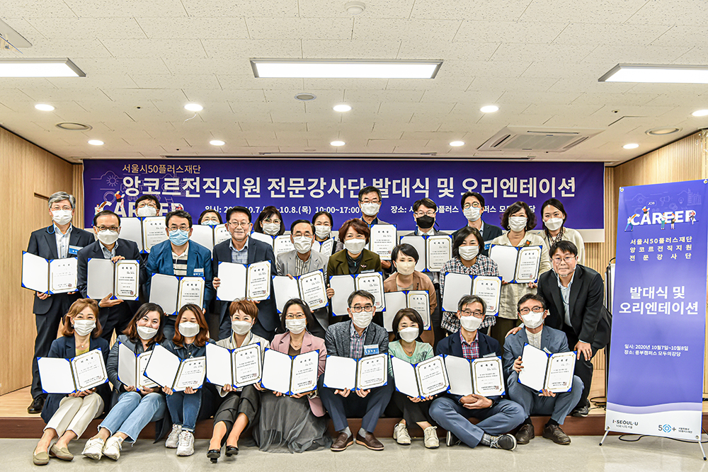 지난 10월 7일부터 8일까지 서울시50플러스 중부캠퍼스에서는 서울시50플러스재단 앙코르전직지원 전문강사단 발대식이 열렸다. 서울시50플러스 재단은 전직지원시장 진출을 통해 정책환경 변화에 대응하고자 전직지원분야 강사, 컨설턴트, 퍼실리테이터 경력자를 중심으로 전문강사 25명을 선발 및 위촉했다.