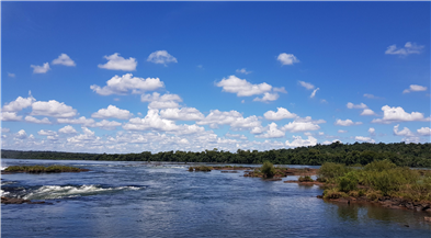 드디어 푸에르토 이과수에 도착했다. 18km만 가면 이과수 국립공원이 나온다. 스페인어로 이과수, 포르투갈어로 이구아수인 폭포는 아르헨티나 미시오네스 주에 80%, 브라질 파라나 주에 20%가 속해 있다. 270여 개의 폭포가 2.7km에 걸쳐 있다. 낙폭은 64m 정도인데 최대 낙폭은 82m다. 원래 모든 지역이 파라과이의 영토였으나 역사상 가장 참혹했던 전쟁의 하나로 불리는 삼국동맹전쟁에서 아르헨티나, 브라질, 우루과이 3국 연합군에게 대패하여 이과수 폭포 대부분을 잃었다. 폭포의 전경을 한눈에 보기에는 브라질 쪽이 좋지만, 웅장함을 즐기기에는 폭포 상부까지 보행자 다리가 설치되어 있는 아르헨티나 쪽이 낫다. 폭포로 가는 길목의 이과수 강물이 말 그대로 고요하고 잔잔하게 흐른다. 눈이 시리게 파란 하늘에 뭉게구름이 떠 있다. 물속에는 이름 모를 물고기가 헤엄쳐 다녔다.