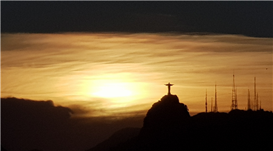 석양의 예수상을 보기 위해 오후 늦게 빵산으로 갔다. 빵 지 아수카르로 올라가는 케이블카는 관광객이라도 만 60세 이상이면 50% 할인해 준다. 케이블카를 타고 올라간 사람들이 리우 전경을 감상한 뒤에 난간 앞에 자리를 잡고 앉아서 일몰을 기다린다. 황금빛 하늘을 향해 두 팔을 벌리고 서 있는 예수님의 모습이 장엄하지 않은가?