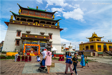 간당 사원은 티벳 불교 사원이다. 몽골의 파스파 문자는 쿠빌라이 칸이 만든 표음문자이고, 지금은 러시아 알파벳을 빌려서 쓰고 있다. 탑 모양의 조형물이 많고, 불경이 적힌 마니차를 돌리며 기도하는데 글씨체가 아주 아름답다. 전 세계 불상 중 실내에 있는 것으로는 가장 크다는 불상이 있다(26.5m). 구소련이 가져가서 총알을 만드느라 녹여서 썼는데 1996년 일본과 네팔의 기금으로 다시 세웠다고 한다. 사진을 찍으려면 돈을 내야 한다. 이곳만 제외하고 실내는 모두 촬영 금지다. 정원은 관리가 되지 않아 잡초가 무성했다. 샤먼들의 게르도 둘러보자. 점도 쳐 주는데 유료이다.