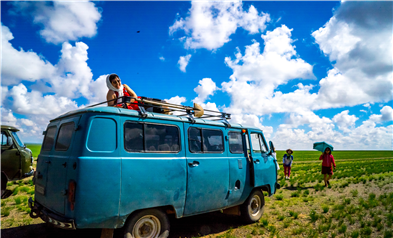 하루에 200Km~300Km 이상 달리므로 반드시 사륜구동차를 타야 한다. 끝없는 초원을 마구 내달리는 기쁨을 누리고 싶다면 직접 운전하자. 난코스에서는 물론 현지인 기사가 운전해야 한다. 필자가 탔던 차는 러시아의 군용차로 개발되었다는 구형 ‘푸르공’이었다. 에어컨은 물론이고 안전벨트도 없고, 차체도 울퉁불퉁 구겨진 차였다. 폐차장에 있어야 할 차가 잘 굴러다닌다. 프루공의 강점은 전차에 가까운 힘이다. 개울이건, 바위투성이 산길이건, 수렁이건 거침없이 달린다. 몽골의 여름은 우기다. 사막에 가까운 고비 지역도 폭우로 길이 끊기고 순식간에 수렁이 되곤 한다. 지질이 고운 점토층이다 보니 비가 내려도 흡수가 되지 않아 찐득거리는 수렁을 만든다. 푸르공이 오지에 좋은 차라고는 하나 절대 추천하지 않는다. 뒤통수가 서늘했던 적이 많았다.