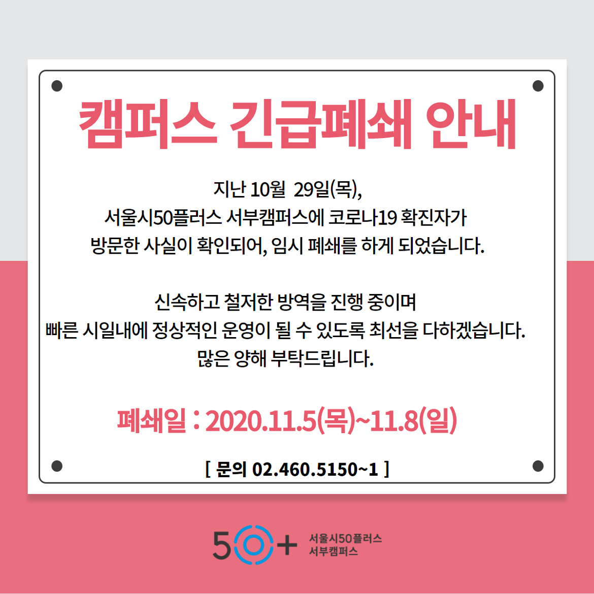 [서부][긴급공지] 캠퍼스 임시 폐쇄 안내 [11.5~8]