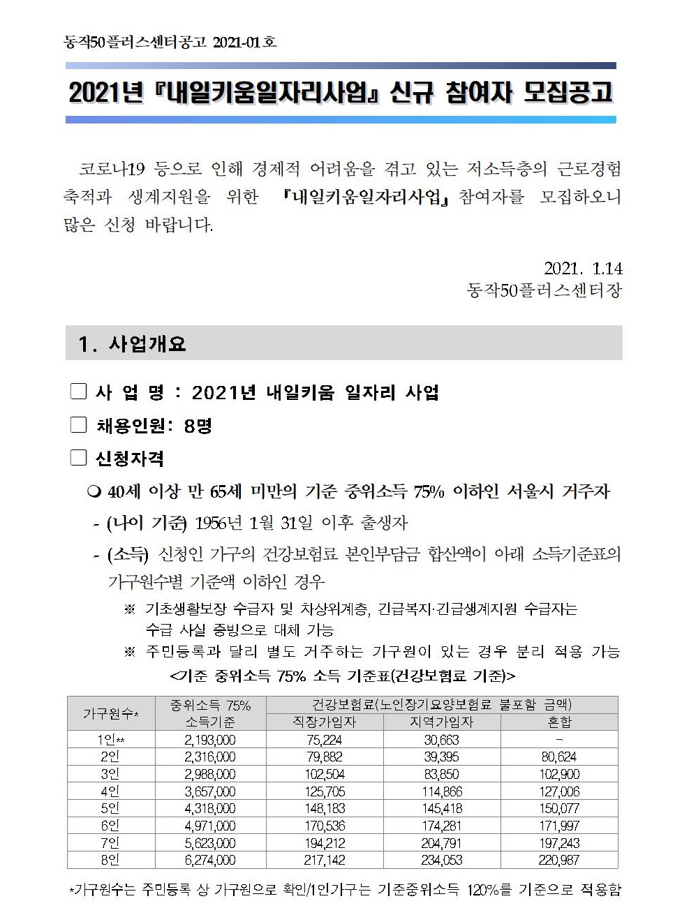 [동작]2021년 내일키움일자리사업 신규 참여자 모집공고