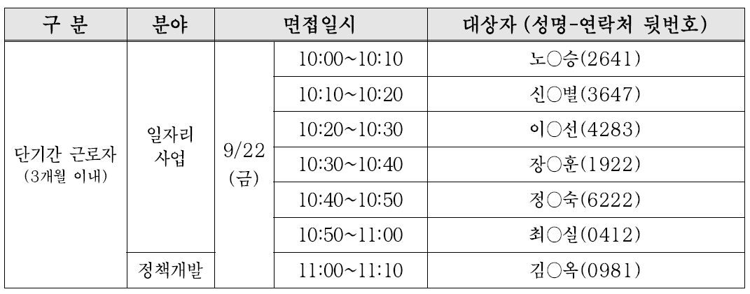 - 면접시험 응시자는 신분증을 지참하여 면접대상자별로 해당하는 면접일시