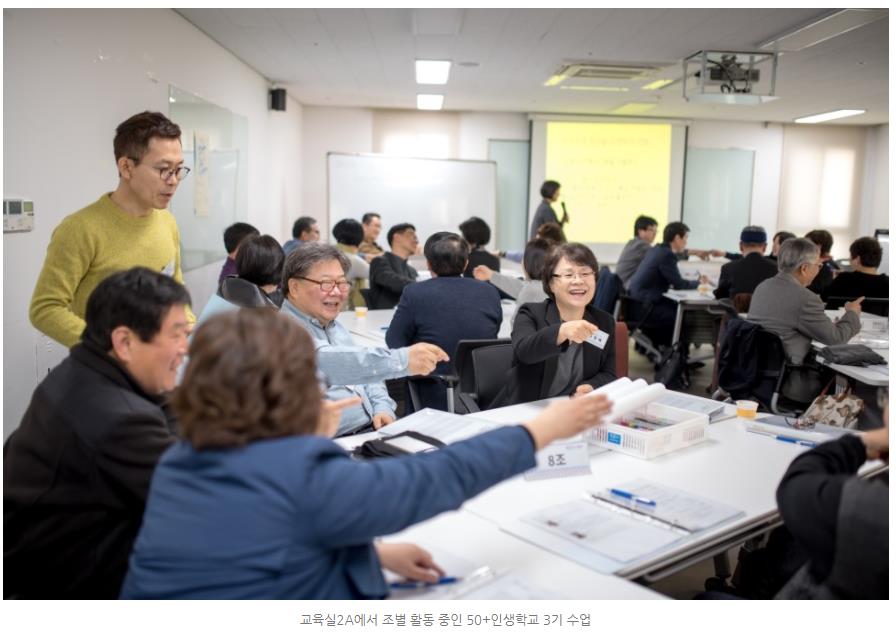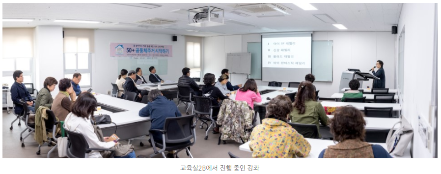 50+세대가 자유롭게 탐색하고, 경험하고, 배우고, 교류하도록 만들어진 공간답게 '스스로 만드는 50+세대들의 아지트라는 슬로건과도