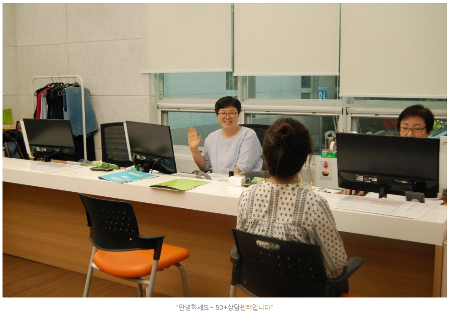 50+상담센터 옆에는 1:1로 조용히 이야기할 수 있는 방이 따로 있으니까. 걱정은 붙들어 매시라~