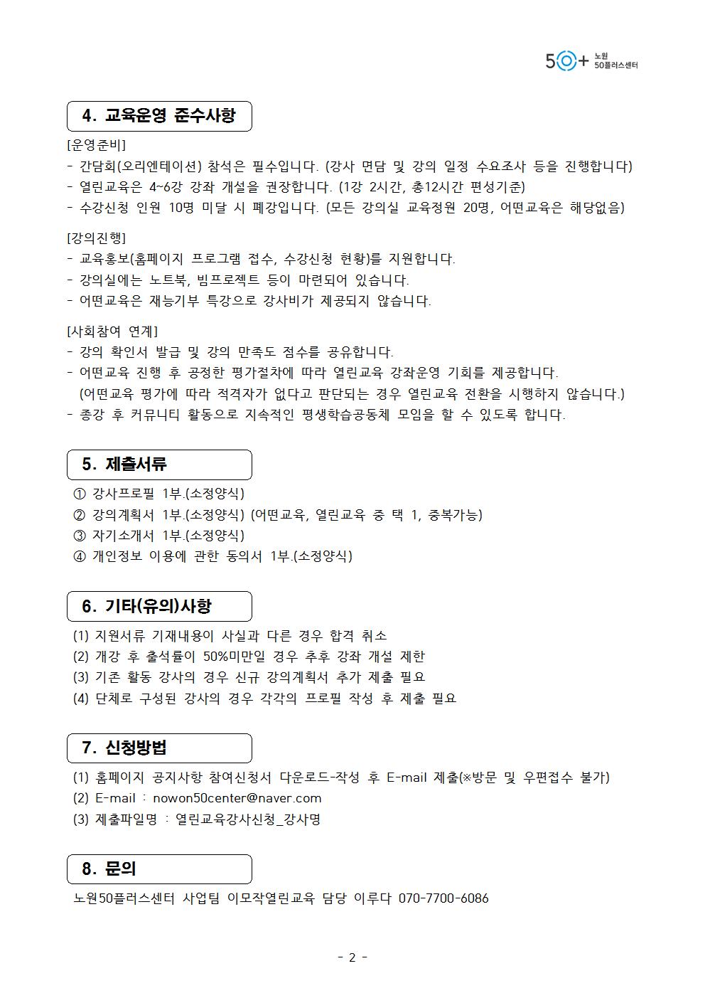 [노원][모집] 2019 이모작열린교육 3학기 강사 모집
