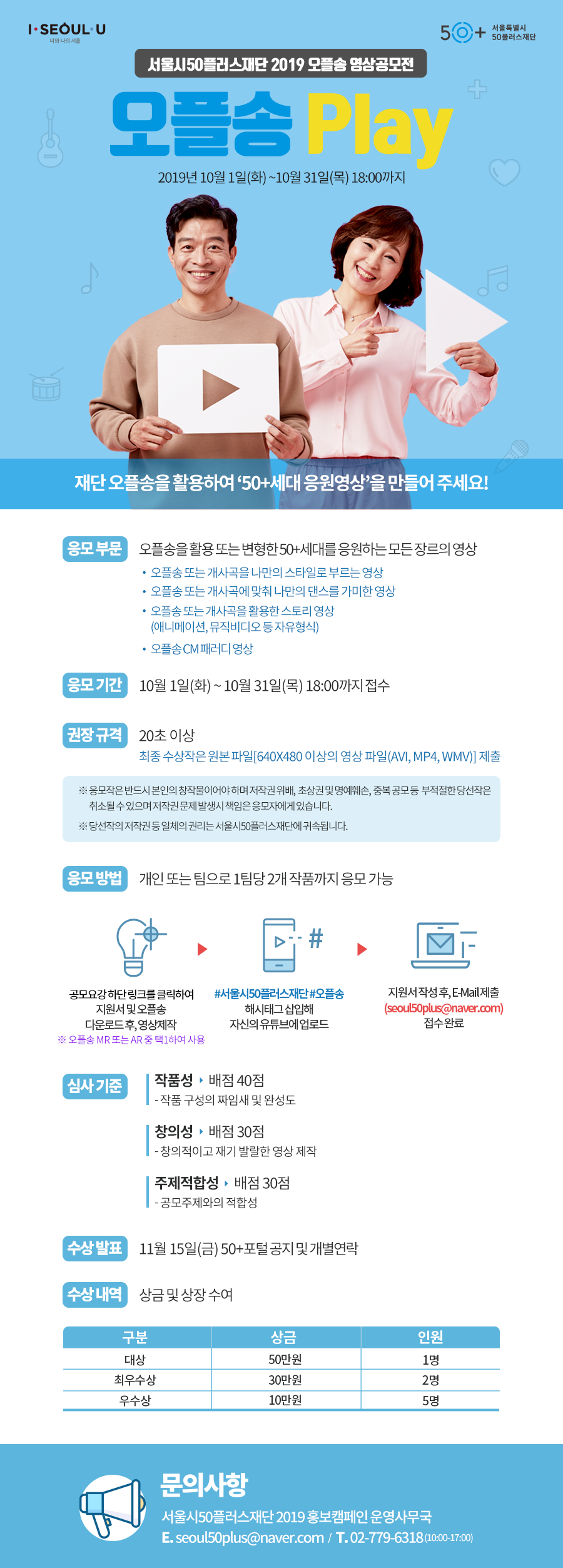 ▶수상발표 : 2019.11.15(금) 50+포털 공지 및 개별연락