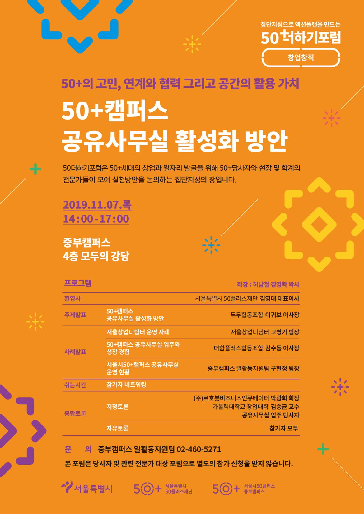 [중부][50더하기포럼] 50+캠퍼스 공유사무실 활성화 방안