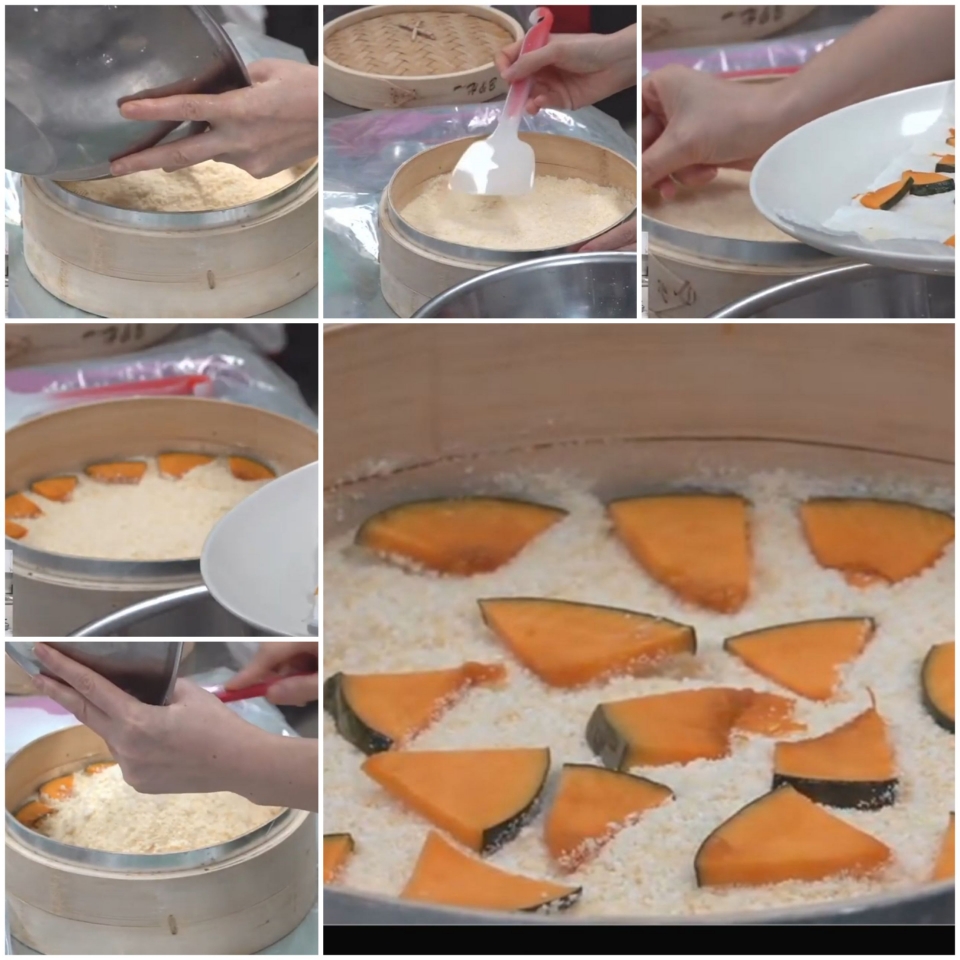 4. 되도록 덩어리를 손으로 풀어서 쌀가루와 단호박이 덩어리지지 않고 잘 섞이도록 비벼줍니다.
