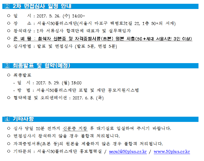 서울시 50플러스재단 | 2017년 50+단체 설립지원사업 공모 서류심사 합격 모임 및 면접심사 공고