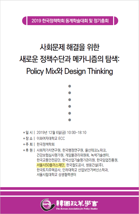 50+정책연구결과의 효과적인 확장과 공유를 위한 한국정책학회 섹션 공동 기획 포럼에 초대합니다.