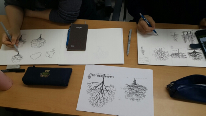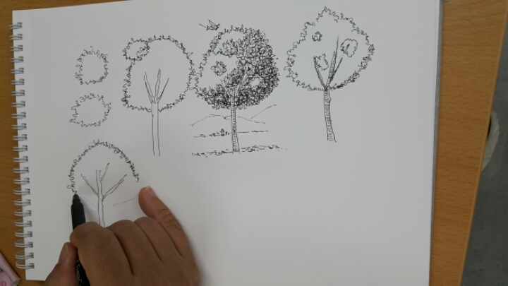 여름 나무 그리기 중 '활엽수'그리기 실습이 본격적으로 시작되었는데요~