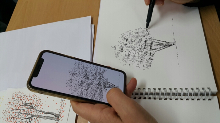 세번째 질감을 통해 나무의 볼륨을 표현한 후 나무 잎사귀의 느낌들을 표현해야 진정한 나무가 완성되는데요~