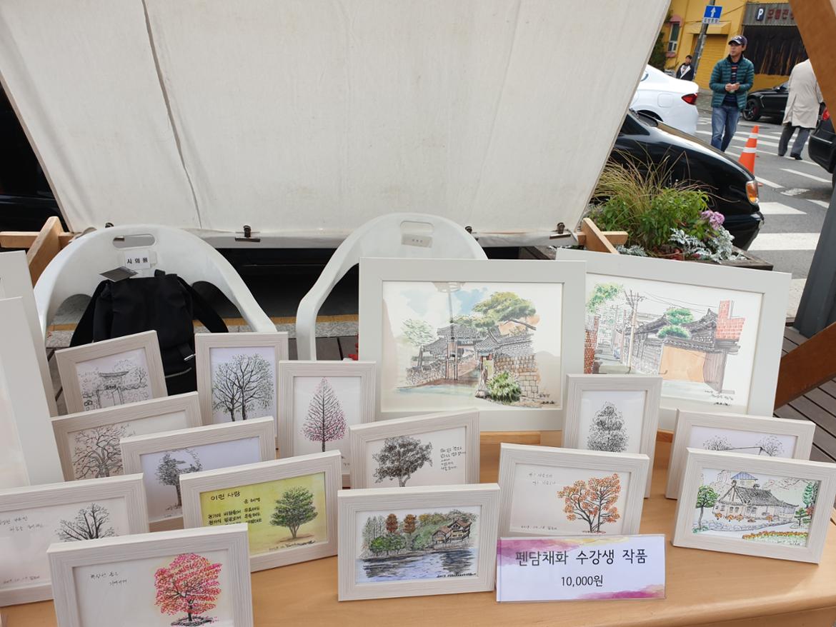 좋아하는 나무그림이나 풍경을  엽서에 완성해 오면 액자에 넣어 전시도하고 판매하기로 했어요~