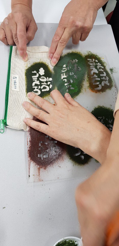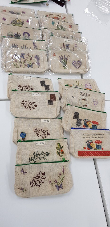 - 파우치 뒷면 캘리문구로 꾸미고 마무리 작업