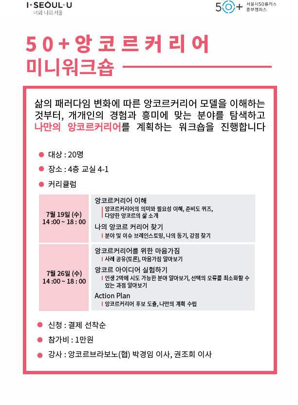 [중캠소식통] 50+앙코르 커리어 미니 워크숍