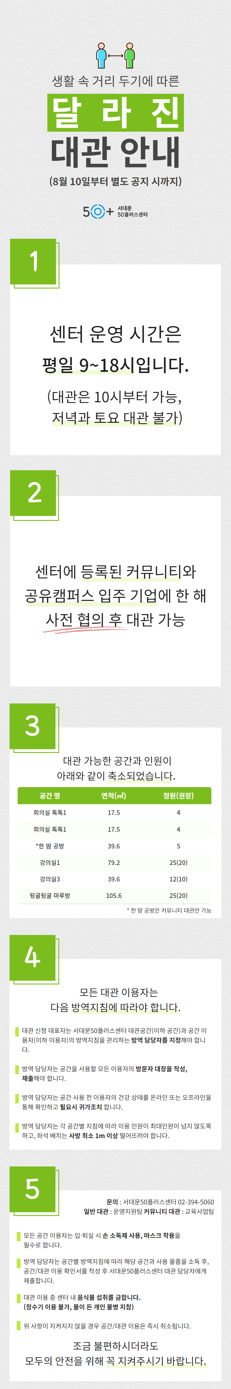 서울시 서대문센터 | 생활 속 거리 두기 1단계 기간 중 대관 안내
