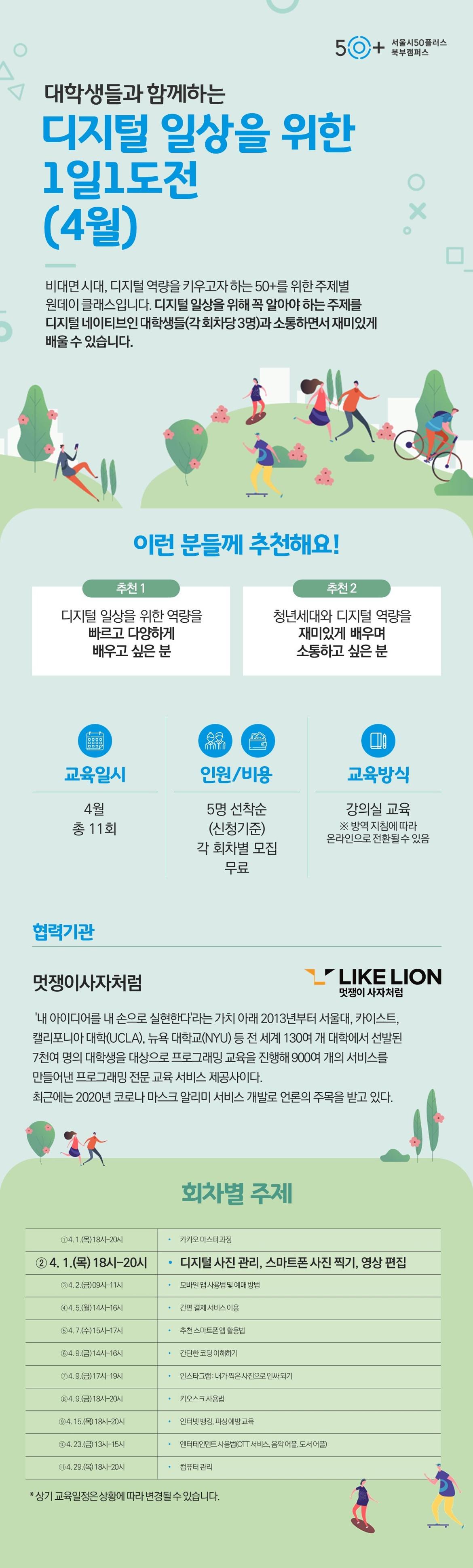 (1 회차) 2021.04.01(18:00 ~ 20:00) 교육실 3 멋쟁이사자처럼 디지털 사진 관리, 스마트폰 사진 찍기, 영상 편집 스마트폰