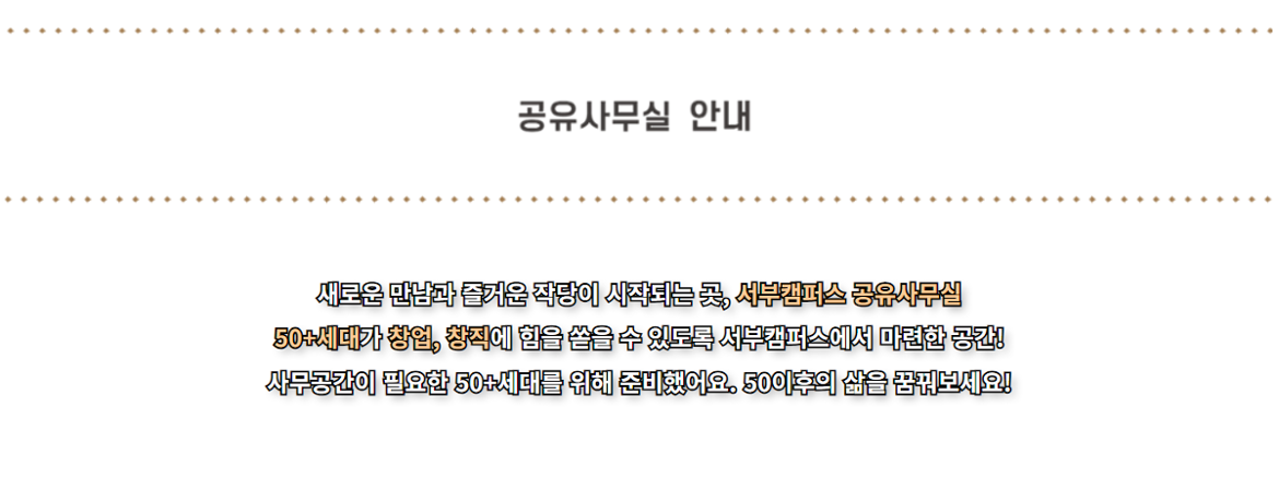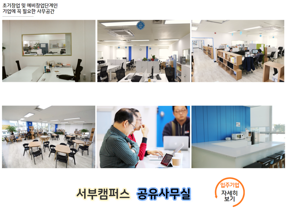 • 공간 제공 : 총 35석(지정석) • 집기 지원 : 책상 및 의자 등 사무용 가구, 사물함, 사무용품 • 공동 시설 : 회의공간, OA, 커피머신, 미팅부스 등 • 네트워크 : 입주자 자치회의