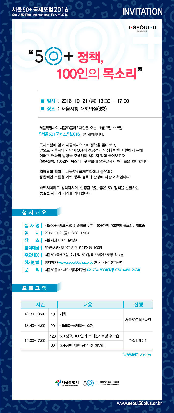 『50+정책, 100인의 목소리』 워크숍에 50+당사자 여러분을 초대합니다.
