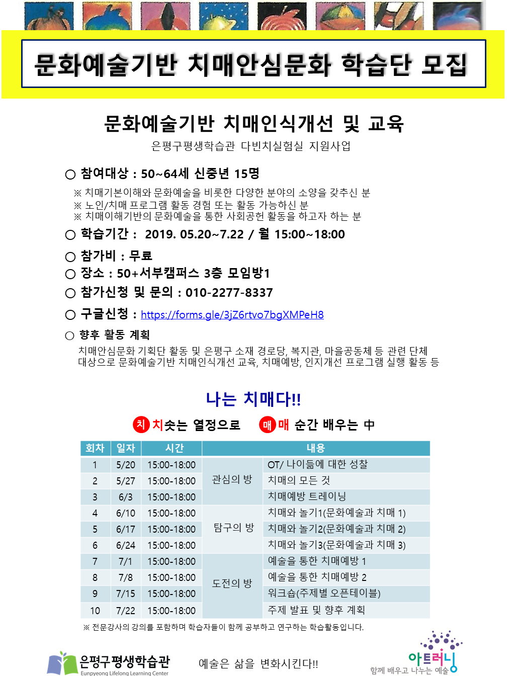 문화예술기반 <치매안심문화 학습단>을 모집합니다!