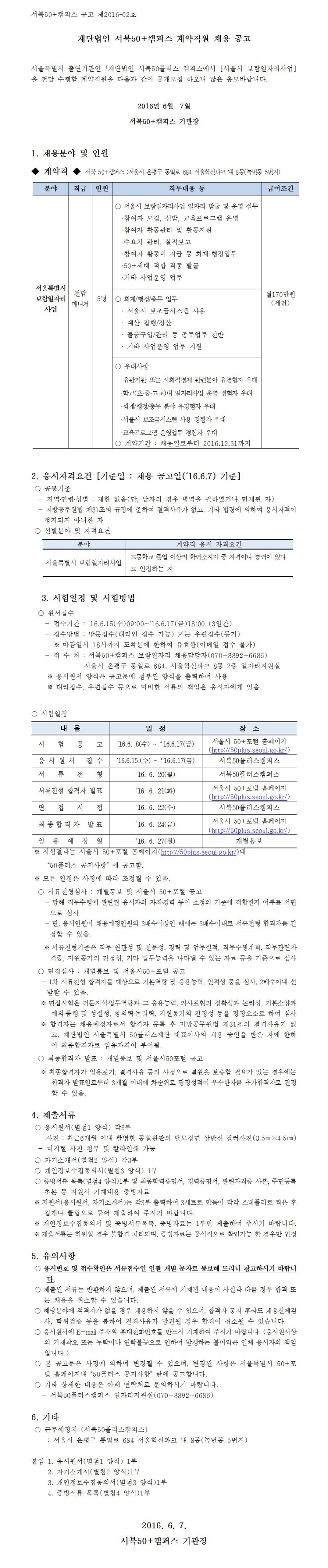 서북50+캠퍼스 계약직원 채용 공고 (6월)