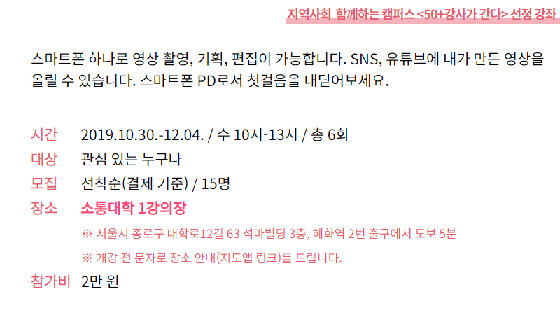 소통대학(대학로) | 이태영 | 사진 촬영 및 동영상 촬영 노하우 |