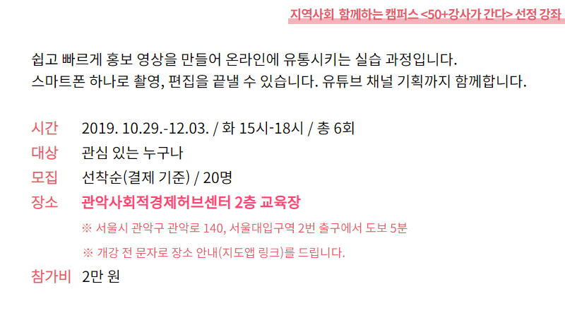 관악사회적경제허브센터 | 오경순 | 영상 촬영 노하우와 편집 프로그램 익히기 | 없음 |