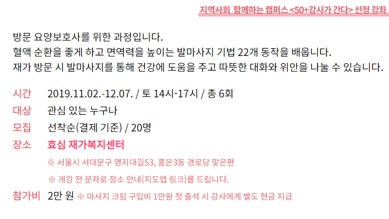 효심 재가복지센터 | 김종철 | 발가락, 발바닥 마사지 복습 | 타월3장 |
