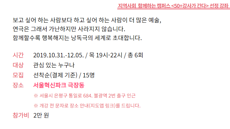 서울혁신파크 극장동 | 이승기 | 화술- 어떻게 전달할 것인가? | 없음 |