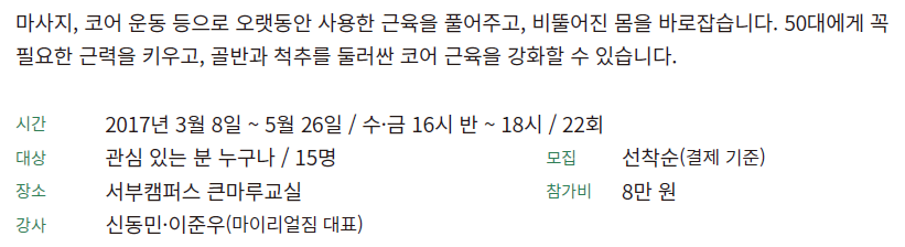 (1 회차) 2017.12.20(16:30 ~ 18:00) 큰마루교실 서부캠퍼스 강사진 근력운동 없음
