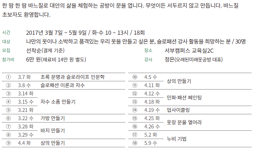(1 회차) 2017.12.20(10:00 ~ 13:00) 교육실2C 서부캠퍼스 강사진 초록 문명과 슬로라이프 인문학 없음
