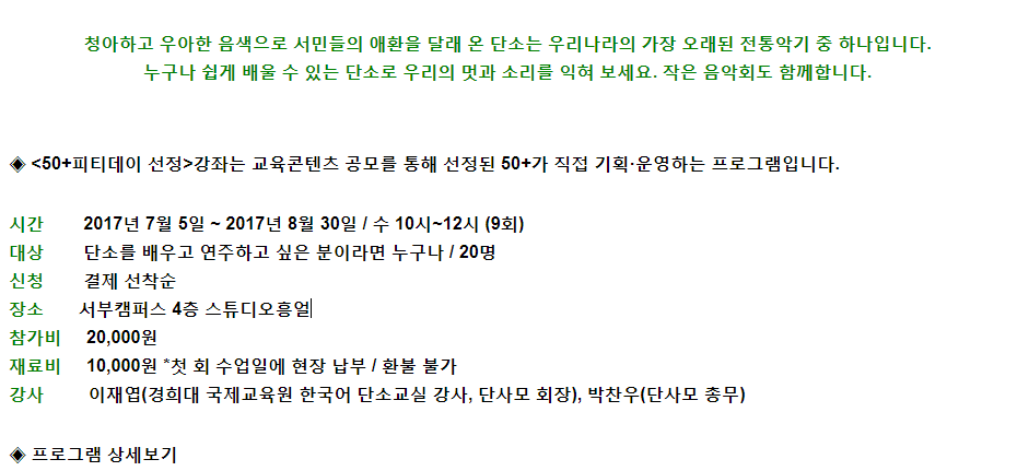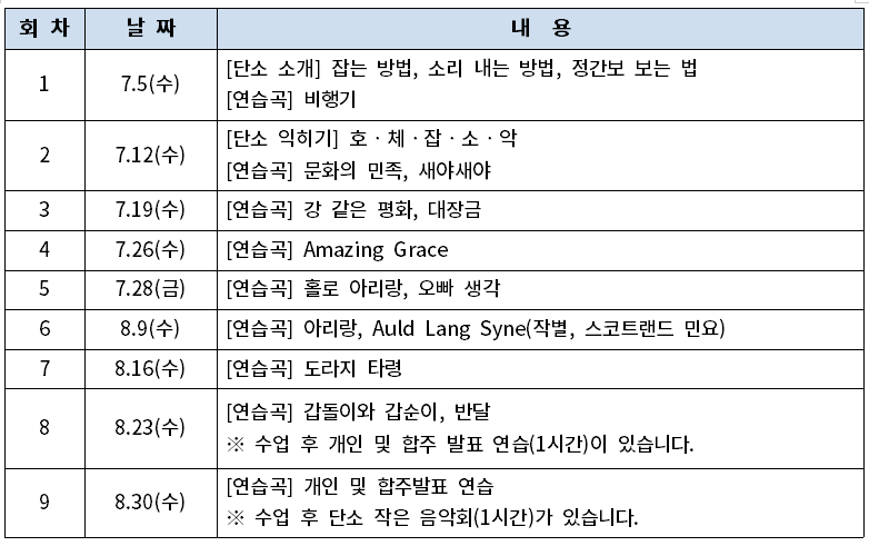 <50+피티데이 선정> 단소 연주교실(초급반)