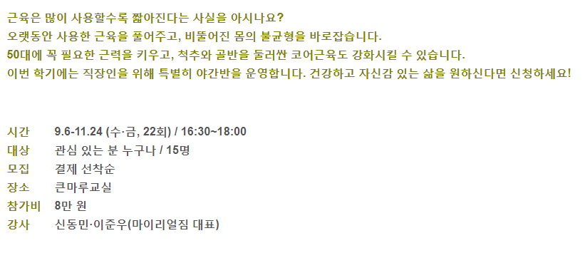 (1 회차) 2017.12.26(16:30 ~ 18:00) 큰마루교실 서부캠퍼스 강사진 근력운동 없음