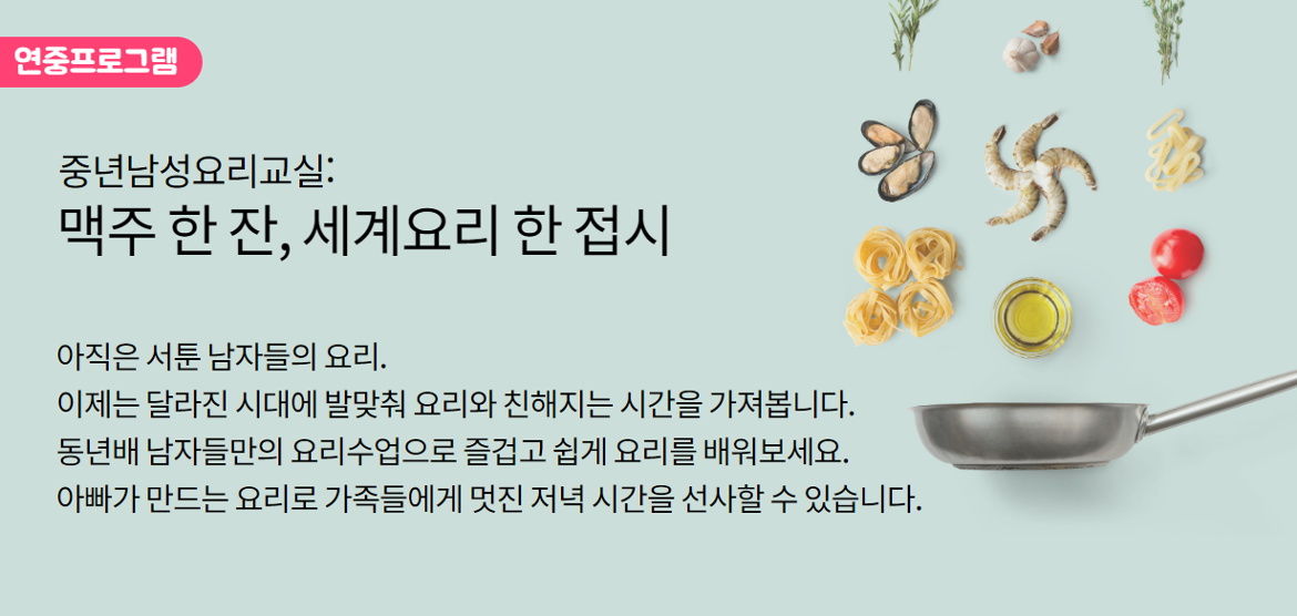 추천     요리에 서툴거나 동년배와 편한 환경에서 요리를 배우고 싶은 중년 남성