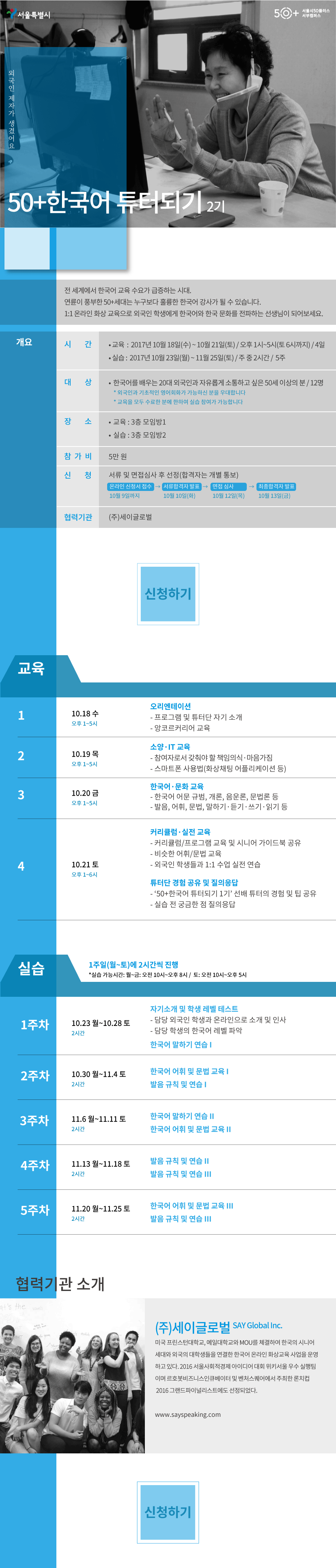 (1 회차) 2017.12.23(13:00 ~ 17:00) 모임방 1 서부캠퍼스 강사진 오리엔테이션: 프로그램 및 튜터단 자기 소개·앙코르커리어 교육 없음
