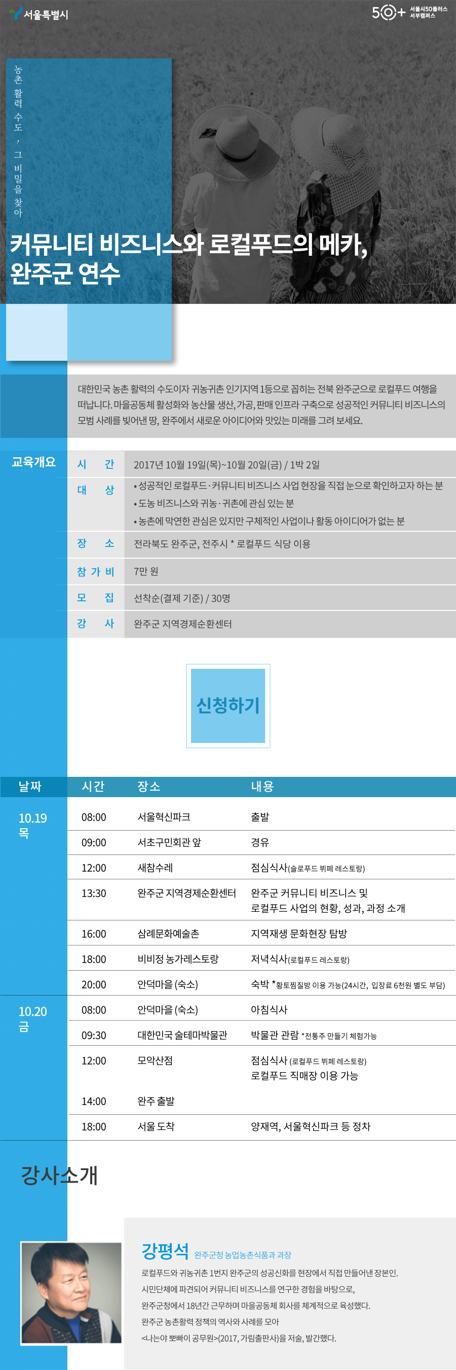 (1 회차) 2017.12.22(09:00 ~ 21:00) 전라북도 완주군, 전주시 서부캠퍼스 강사진 1박 2일 완주군 로컬푸드 여행 없음