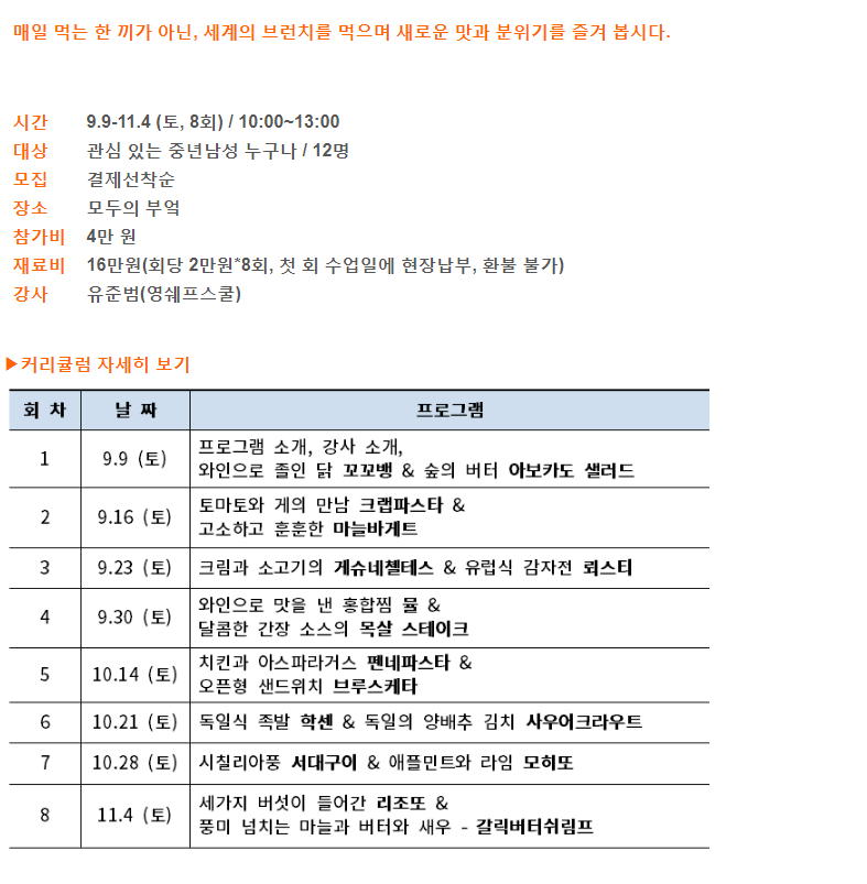 재료비 16만원(회당 2만원*8회, 첫 회 수업일에 현장납부, 환불 불가)