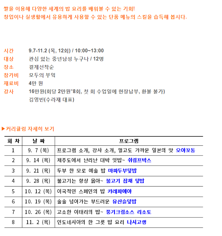 모두의부엌 | 서부캠퍼스 강사진 | 프로그램 소개, 강사 소개, 멀고도 가까운 일본의 맛 오야꼬동 | 없음 |