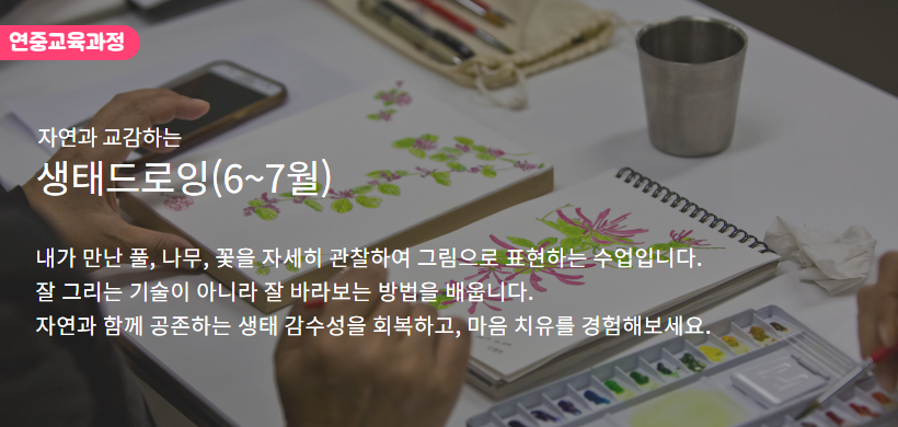 ※ 생태드로잉(6~7월) 과정은 5월 11일(월) 09시부터 신청 가능합니다.